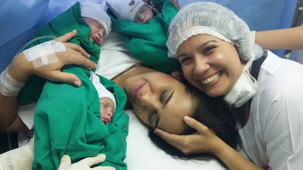Lembra o caso, que saiu aqui, da primeira policial feminina a ter seu casamento com outra mulher reconhecido pela PM do Rio, em junho de 2014? Sábado passado, ela deu à luz... trigêmeos: Benício, Samuel e Vicente. Foi por meio de inseminação artificial. Ontem, a PM e a esposa, que é civil, registraram os bebês nos nomes das duas mamães.
