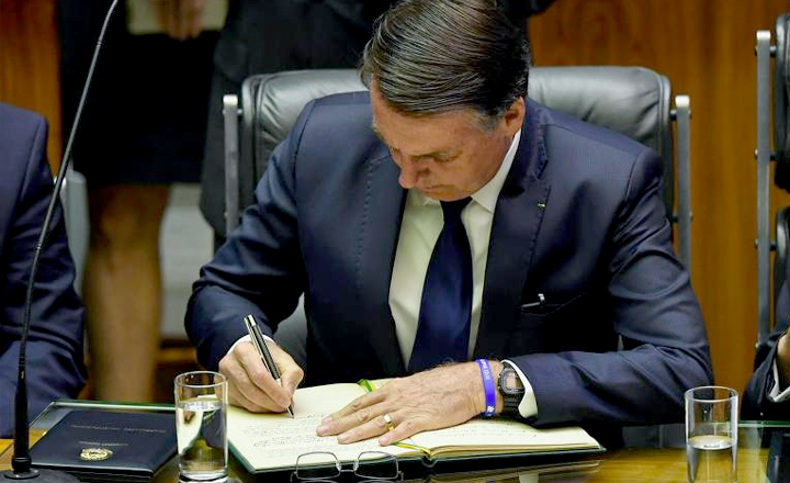 O presidente eleito Jair Bolsonaro (PLS) e seu vice, General Mourão (PRB), foram empossados nesta terça-feira (1º). A cerimônia realizada no Congresso Federal teve início com a execução do Hino Nacional, seguida pela realização do juramento constitucional. Em seguida, o novo chefe do Executivo assinou o termo de posse e fez seu primeiro discurso no novo cargo.